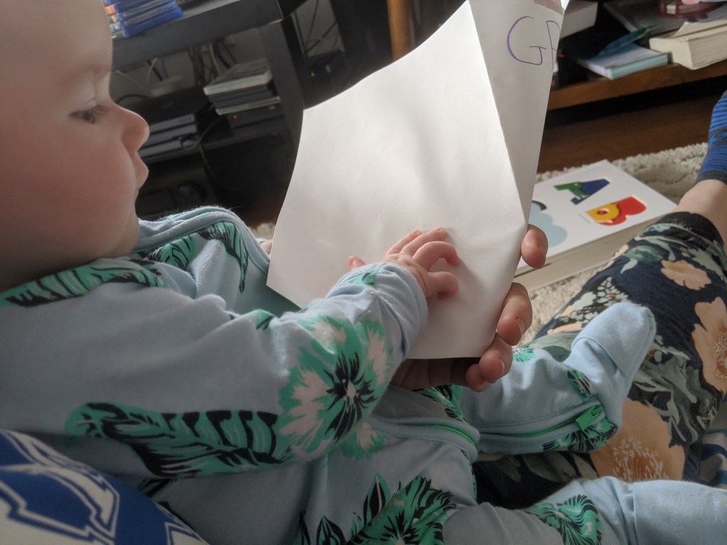 Two weeks until dad takes over and mom goes back to work. We got some Easter cards from the cousins.